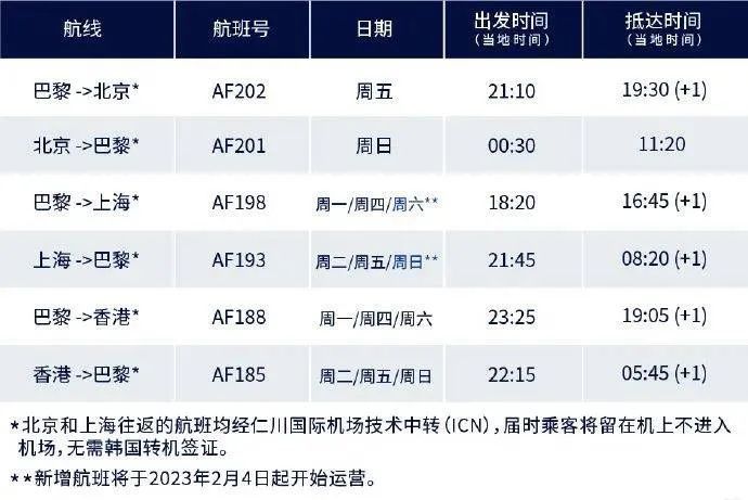法国航空宣布从2023年2月4日起,在上海和巴黎戴高乐机场的航线上每周增加运营至3个客运航班。