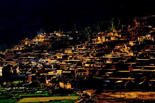 晚上你可以看见满天的繁星和隐约的银河。漆黑的村庄几乎没有一丝灯光。