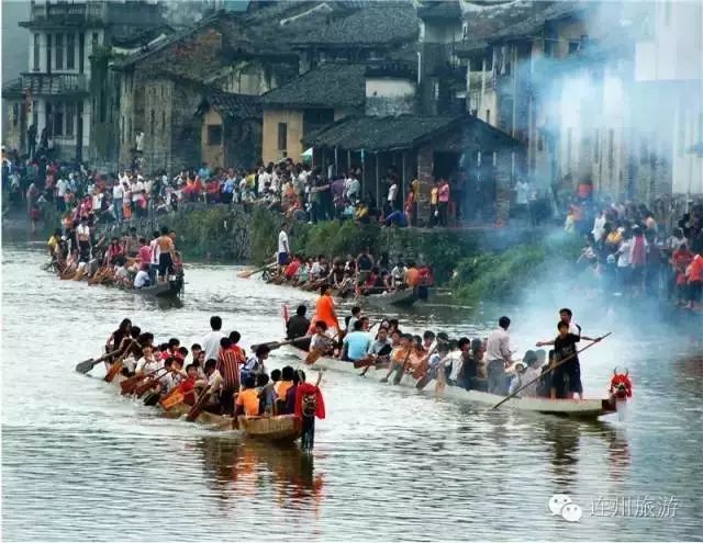 连州的赛龙舟活动在西岸镇特别盛行,一般以村或姓氏为单位,每条龙舟上有锣鼓手、旗手、舵手及浆手数十名。