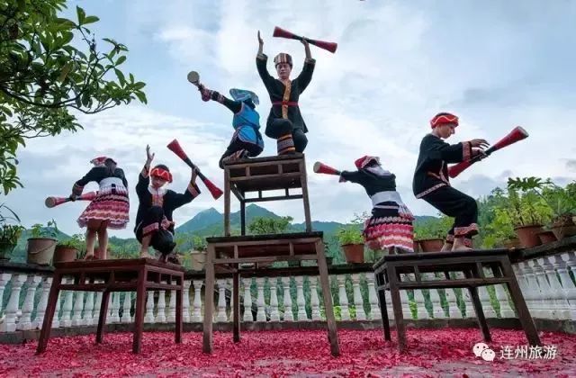 小长鼓舞是连州过山瑶的传统舞蹈,最具民族特色,被喻为瑶族艺术之花,深受瑶族同胞所喜爱。瑶族小长鼓舞含二层意思,一是图腾崇拜,祭祀祖先,二是通过长鼓的舞蹈动作传授生产、生活的技术。