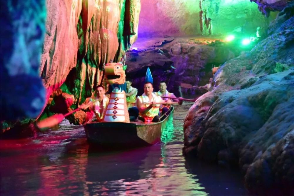 置身其中,一种“别有洞天”的感觉油然而生。底层地下河可泛舟游览,水陆两游的连州地下河,以其恢宏的气势、壮丽的景观和独特的组合,堪称岭南一绝,深受游人赞誉。