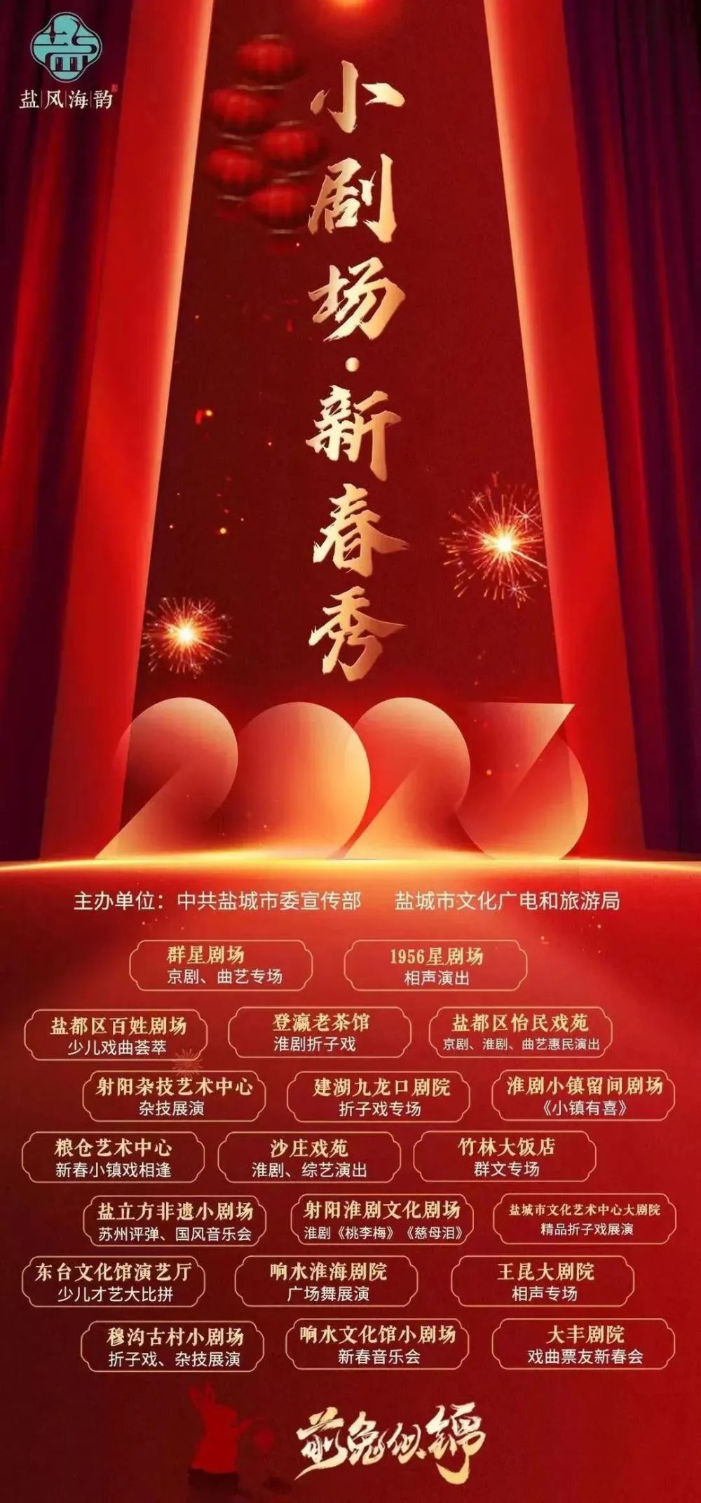 盐城市文化馆:民俗闹新春、我爱家乡戏淮剧专场惠民演出、猜灯谜系列活动、汉服亲子秀、文化集市进景区商圈。