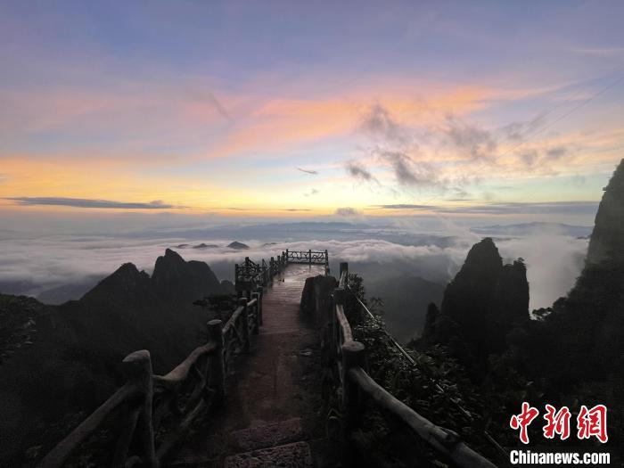 如果你想登高,感受那四面青山列翠屏,一定要去莽山,因雄奇壮美被誉为“南岭第一峰”。莽山五指峰景区,在海拔1400米至1600米处架设索道、扶梯、自助“爬楼机”、悬崖观光垂直电梯等设施,打造无障碍旅游通道,让行动不便人士全程不用下轮椅,就可登顶饱览绝美云海。