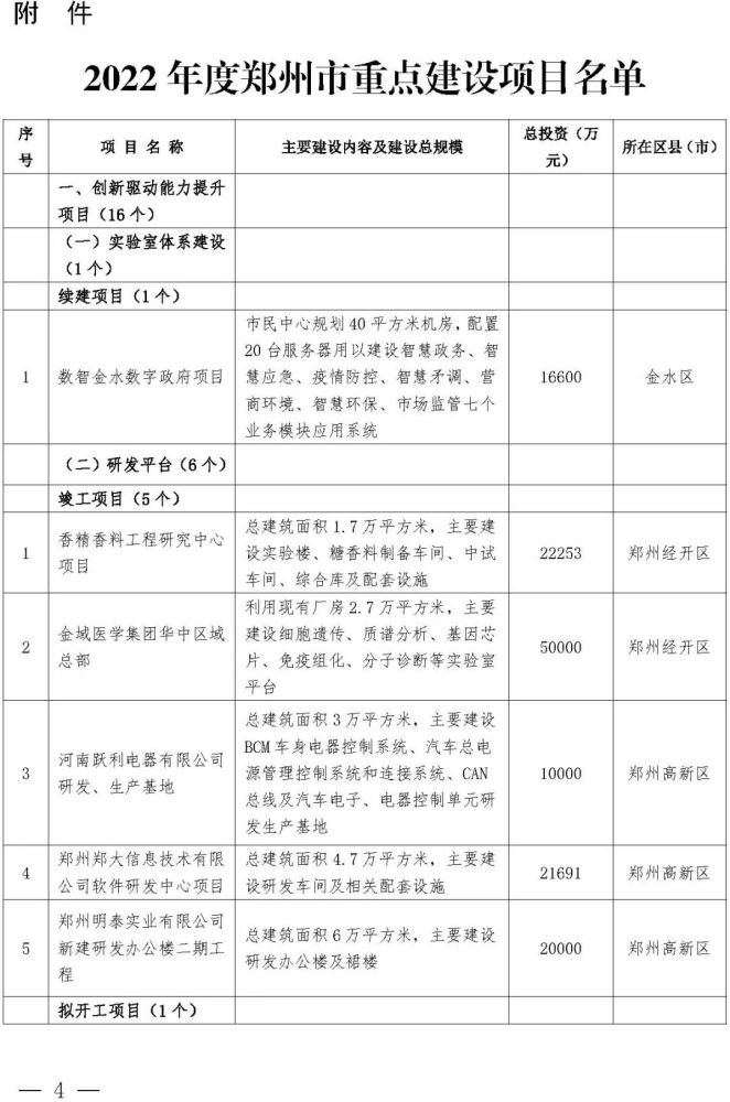微附件:2022年度郑州市重点建设项目名单