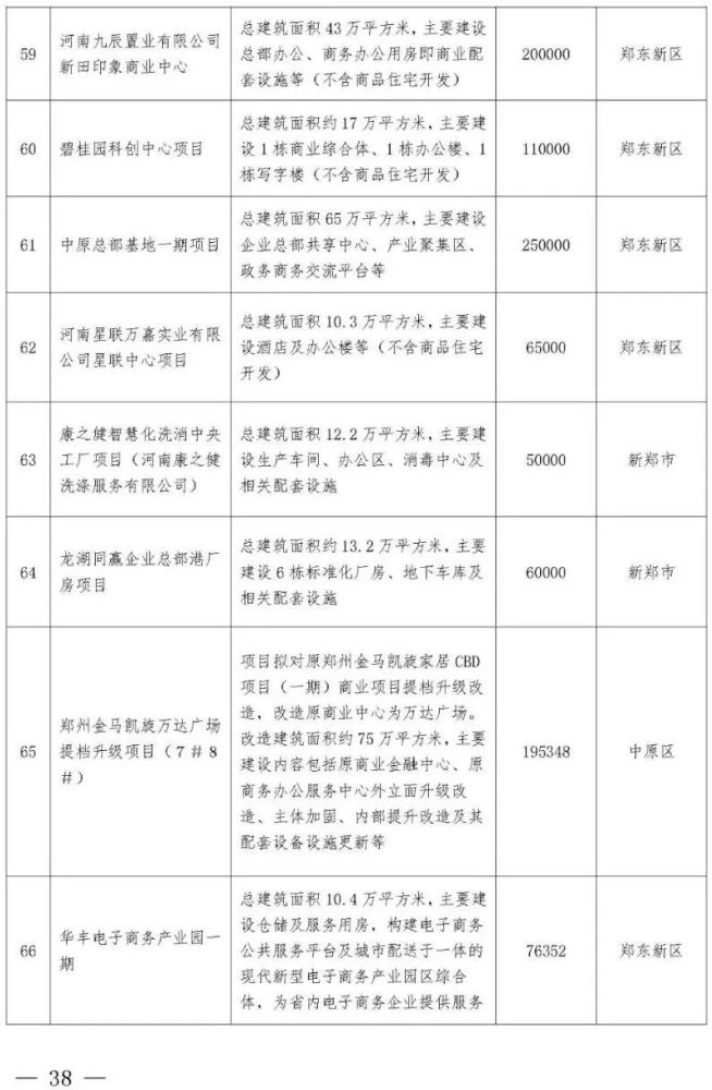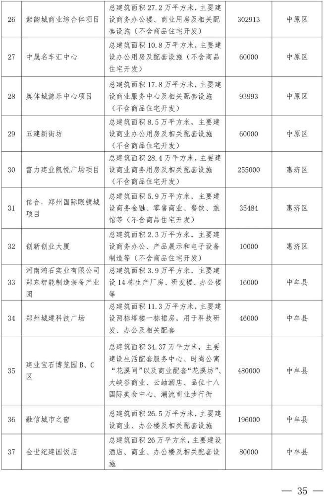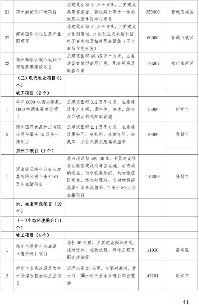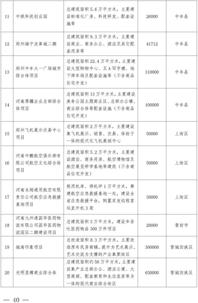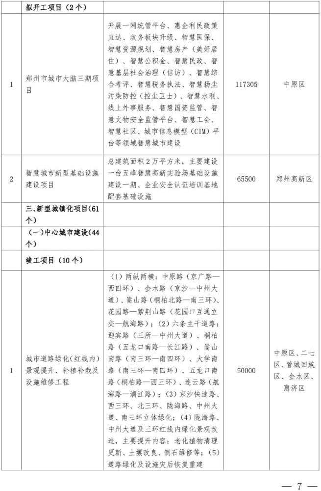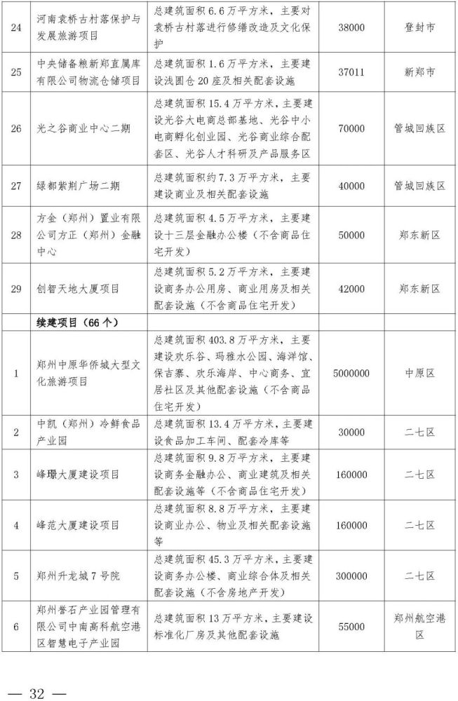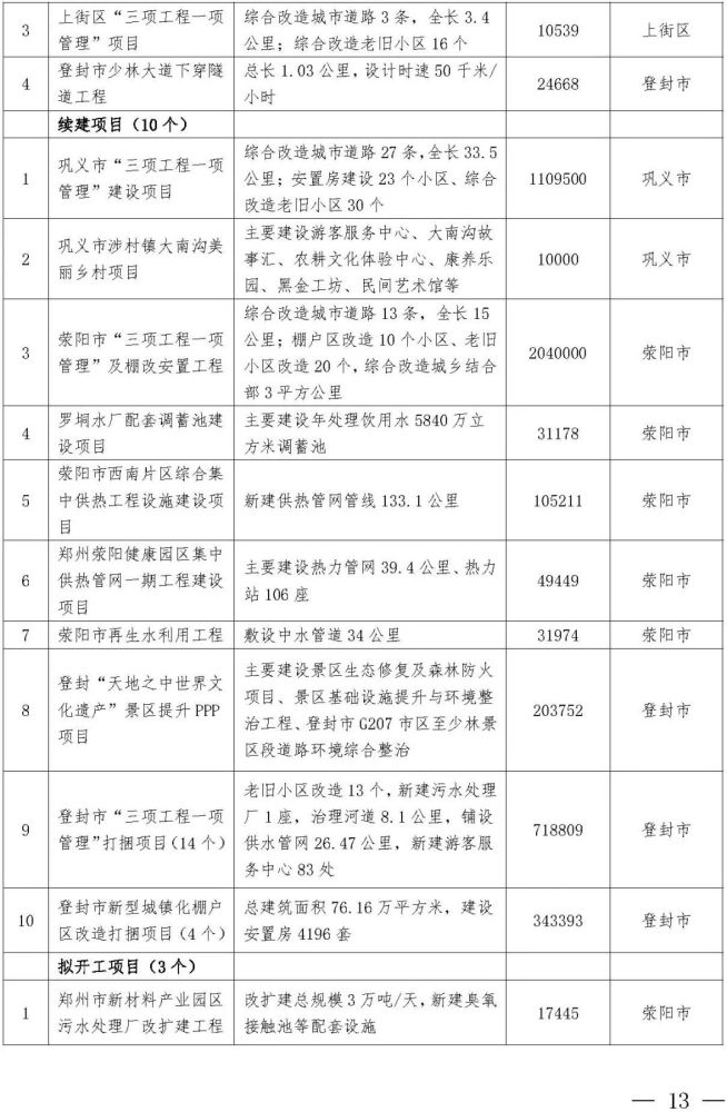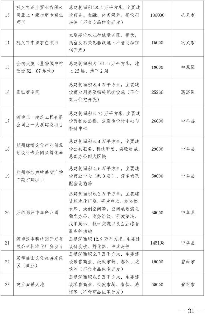 西四环北延、郑开城际大孟站、G310、S317、中原华侨城、申泰中原印象广场、建业中心、星联中心、深业健康城、奥体城游乐中心、锦尚德化、富力建业凯悦广场、融信城市之窗、光之谷商业中心二期、忆江南旅游区升级改造、海宁皮革城二期、城南印象、高新文化广场(二期)、银基风尚大厦、绿都广场商业中心、中原总部基地一期、上街方顶驿、巩义正上·豪布斯卡、中牟杉杉奥特莱斯广场二期、建业嵩岳天地、登封市莲花山森林公园、郑东新区森林公园凤栖阁、高新双湖博物馆聚落、新密市雪花山森林运动公园、郑州广播中心、郑州电视中心……