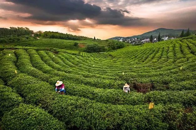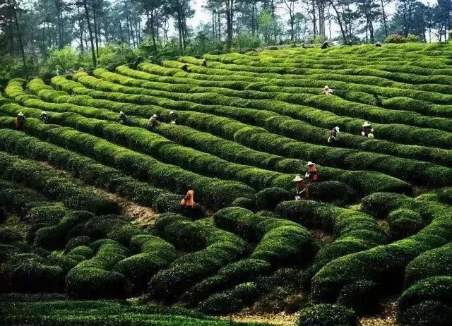 千顷茶园绿油油的一片,穿着碎花布衣的采茶姑娘,挽着竹篮穿梭其间,宛如画中的景象!