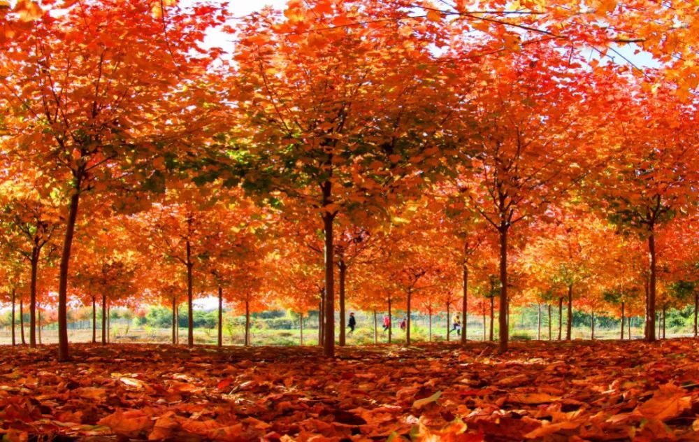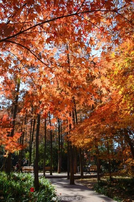 春天樱花击中了游客的少女心,夏天荷花承包了整个湖面。而此时,一排排红枫在蓝天白云下美极了~