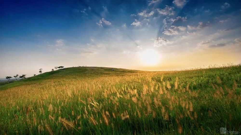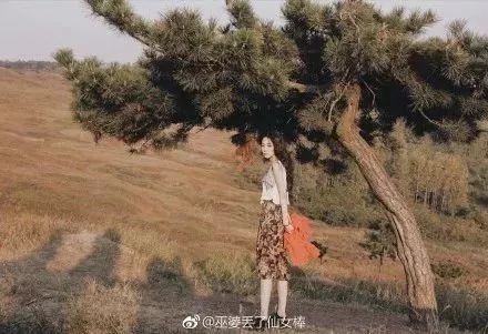 山坡上有一棵网红树,单独一棵立在泛黄草原上,微微泛黄的色彩透着复古的气息。