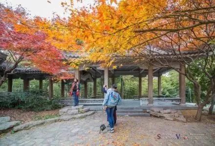 古林公园夏有牡丹冬有梅花,深秋还藏着一片浓艳热烈的红枫。亭台楼榭在红枫的掩映下若隐若现,格外静谧美好。