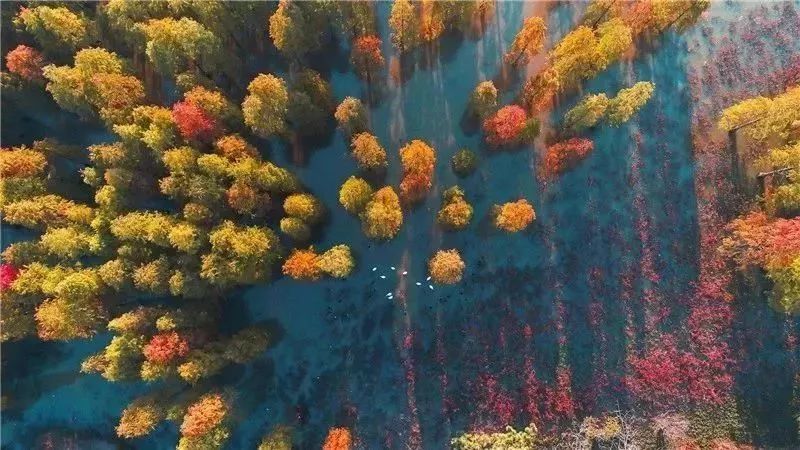 秋冬时节,成群结队的候鸟还会来此过冬。这个时候一定不要放下你的相机,夕阳西下、雁过留声,一幅唯美的秋景图就成片了!