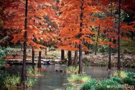 无想山公园里藏着一片池杉林,一到深秋,池杉红成一片,美得让人流连忘返。