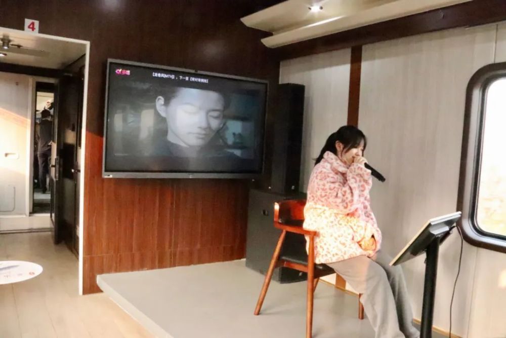 让人眼前一亮的是,本次列车还额外搭载了两节特色功能车厢,在为旅客提供茶水和简餐的同时,更是配备了KTV、按摩椅、麻将桌等娱乐设施,为人们在旅程中增添了几分乐趣。某旅行社的工作人员告诉笔者,此次考察踩线她是带着放了寒假的女儿一起来的,既完成了工作又陪伴了孩子,女儿在母亲的鼓励下使用车厢的KTV设备唱了几首歌,并赢得了同车厢其他乘客的鼓掌称赞。