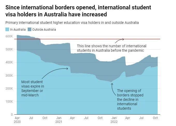 2021年12月,澳大利亚取消了对完全接种疫苗非公民的旅行限制和隔离要求,留学生数量明显开始回升。