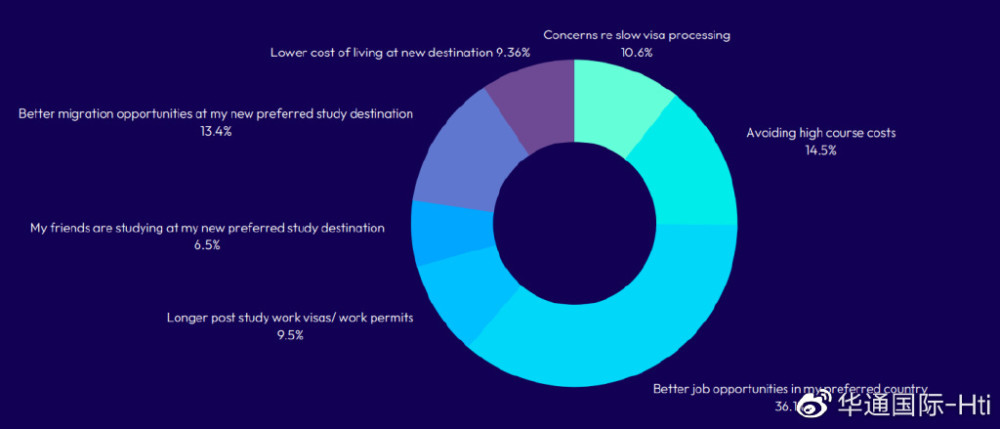 有9.5%的学生出于“毕业后工作签证/工作许可”的原因转变留学意向。正好,英国和澳洲都有相关利好政策。