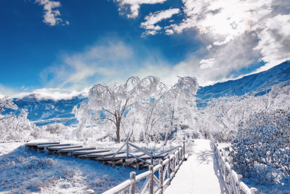 早起能看到日晕佛光等异象,白天能欣赏北方奇观的雾凇,还能置身云海之上遥望周边雪山,夜晚可以遥望冬季星空,是冬季出游的必选之地。