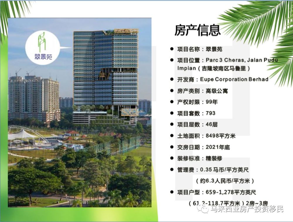 l管理费:0.35 马币/平方英尺(约6.3人民币/平方米)
