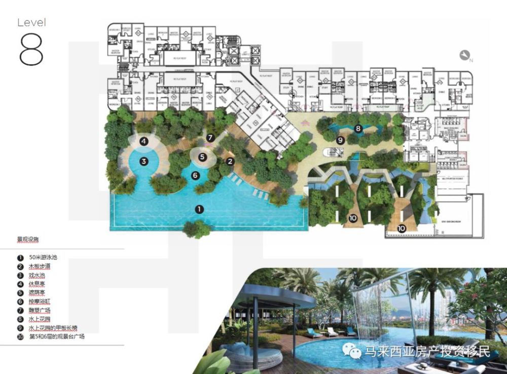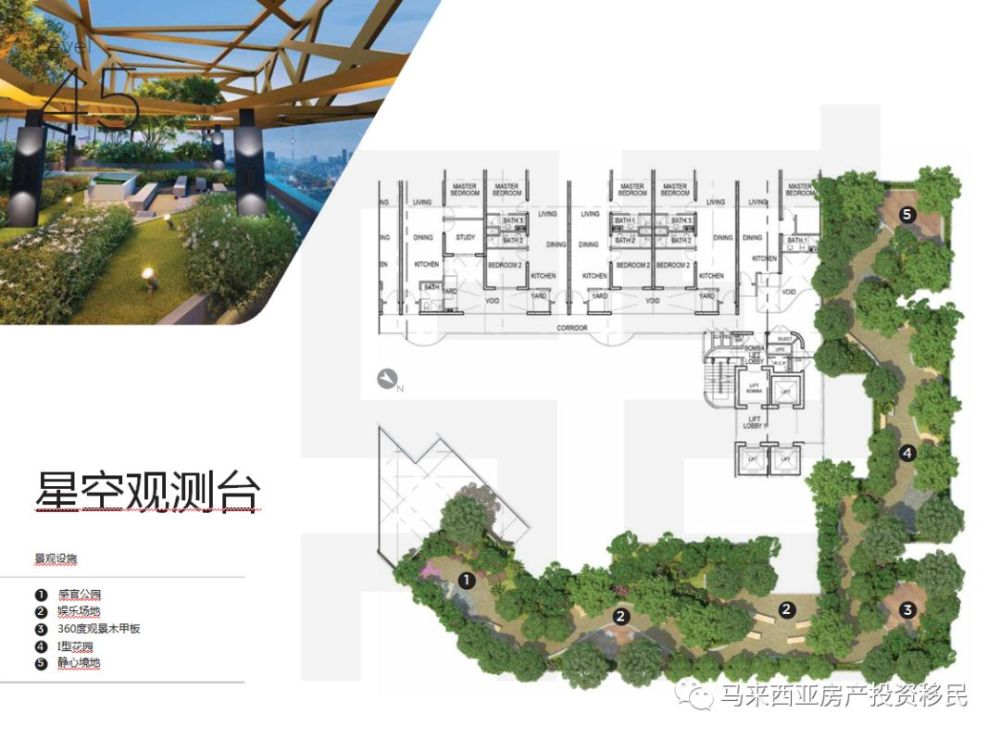 3、同时提供五星级的时尚生活设备和高水准的便利设施:合计有5层楼观景设备;50米游泳池和戏水池,包括360度环顾城市景色的瞭望台、露天野餐处和星空观测台……