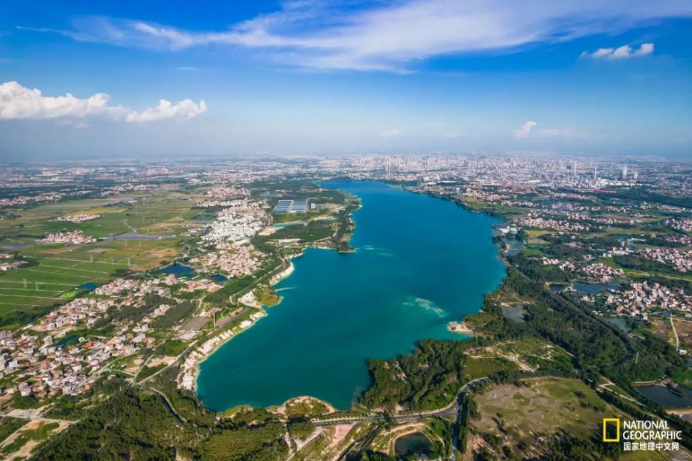 露天矿生态公园全貌,图中水域为好心湖