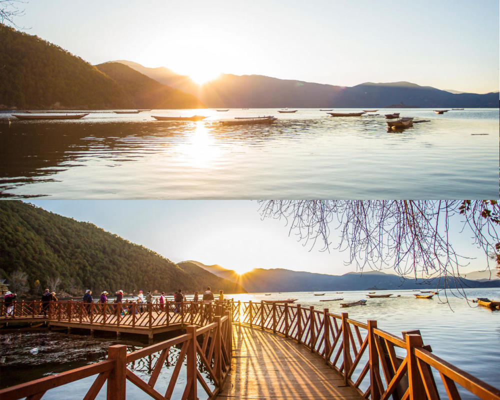 在这里时间都静止啦,看最好的水质,坐猪糟船,体验对歌,观一场摩梭母系大家庭的视听盛宴;过一次走婚桥;在情人树下合一张影……