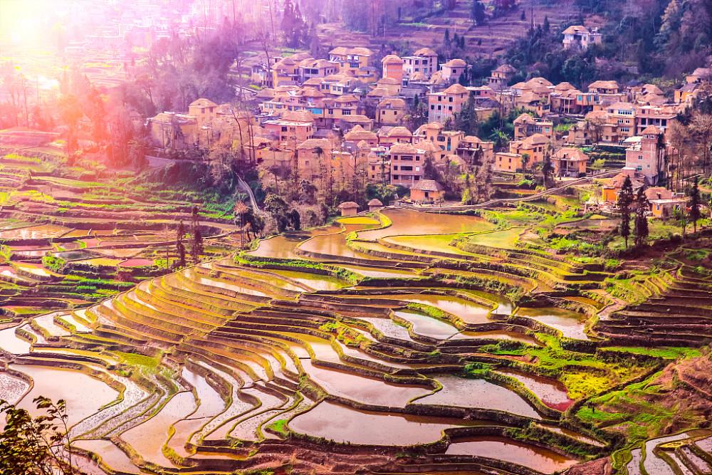 瑞丽边寨喊沙风景区,喊沙村是荣获2015年CCTV“中国十大最美乡村”荣誉称号的一个美丽傣家村落,位于云南省德宏州瑞丽市。“喊沙”是傣语,意为“黄金休憩地”,据傣文史籍记载,在勐卯古国时曾一度为其京都,也传闻它最早是鸳鸯栖歇之地。