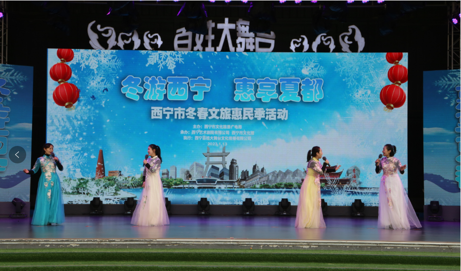 现场推介,推出文旅惠民大餐。在百姓大舞台活动现场,发布了包括节庆游、冰雪游、民俗游、都市休闲游、文旅惠民等五大板块十四项冬春季文旅惠民活动,全方位打造系列冬春季旅游产品,向市民游客介绍了西宁文旅消费券和文旅惠游青海一卡通领取流程,西宁市艺术剧院和市文化馆为广大市民游客带来了精彩纷呈的惠民文艺演出,演员们的热情表演为冬日的西宁增添了一份节日的色彩。