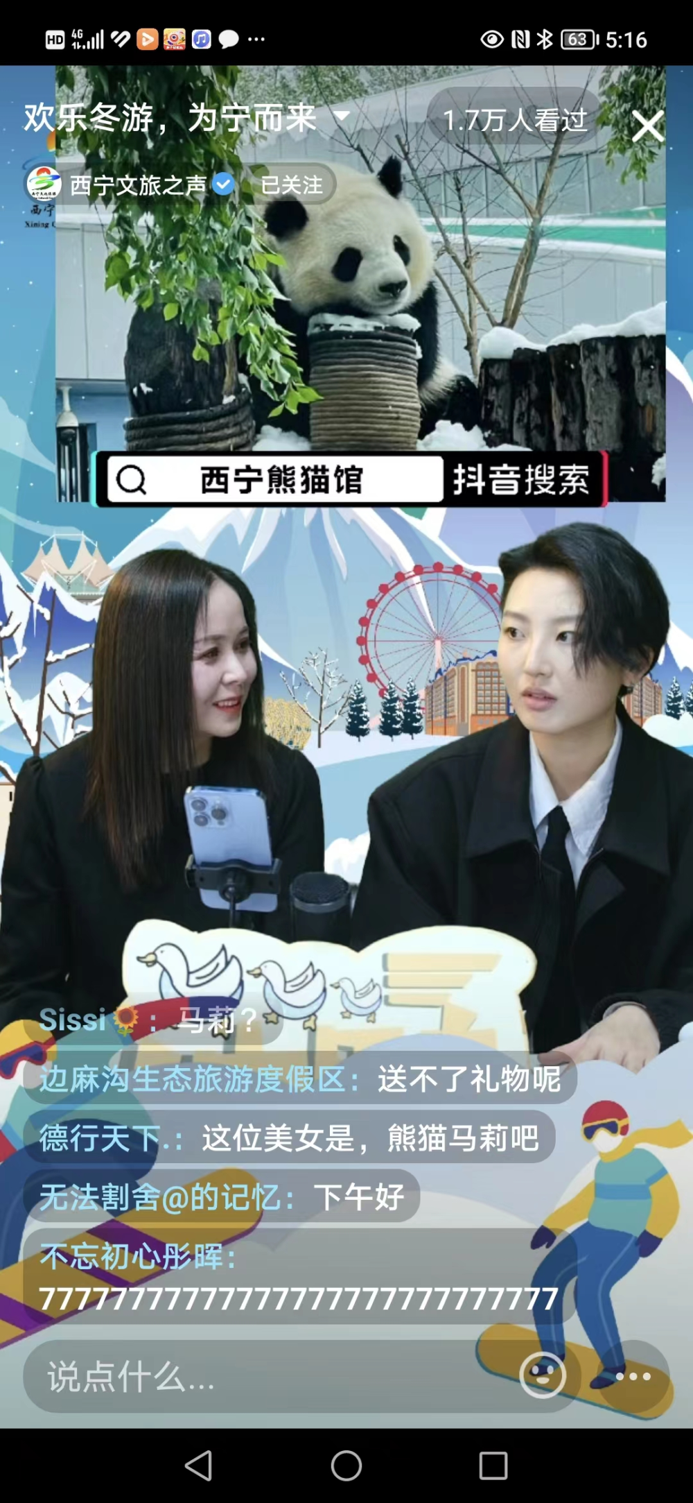 线上线下,助推文旅市场回暖。坚持一体联动、线上线下融合方式,精心策划主题活动,在抖音平台启动“欢乐冬游 为宁而来”短视频挑战赛,围绕城市风情、河湟文化、特色美食、民俗生态等多个主题,通过影像作品的创作和传播,充分展现西宁的冬日之美。在直播现场还推介了冬游西宁游玩攻略,发布了新华联童梦乐园、熊猫馆、边麻沟、康乐滑雪场等网红景区冬春季优惠活动信息,借力新媒体平台加大“冬游西宁”宣传力度,吸引更多市民游客参与活动,感受冬游西宁的独特魅力。