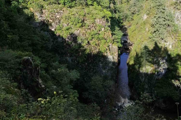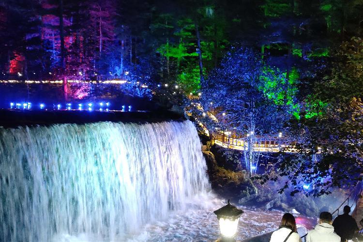 瀑布下的仙女池旁有一条栈道可供近距离游览