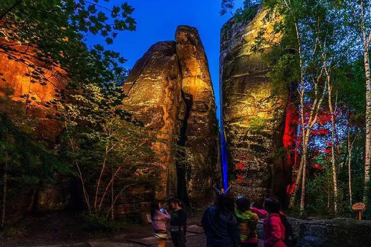 小编提醒:景区新开辟了夜游石林,让整个行程多了几分神秘感。但一定一定要注意的是,腰围大于82厘米(2尺5)的,请谨慎挑战“一线天”。切记!