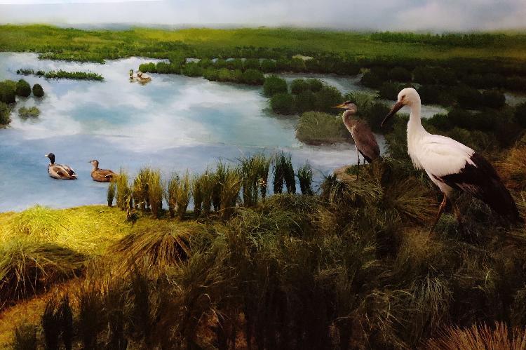 场馆里有湿地公园的各种野生动植物标本构建的生态场景,物种的丰富程度令人赞叹。据工作人员介绍,伊春的白头鹤在冬天来临前就会迁徙,主要迁往日本越冬,来年春天再飞回来。