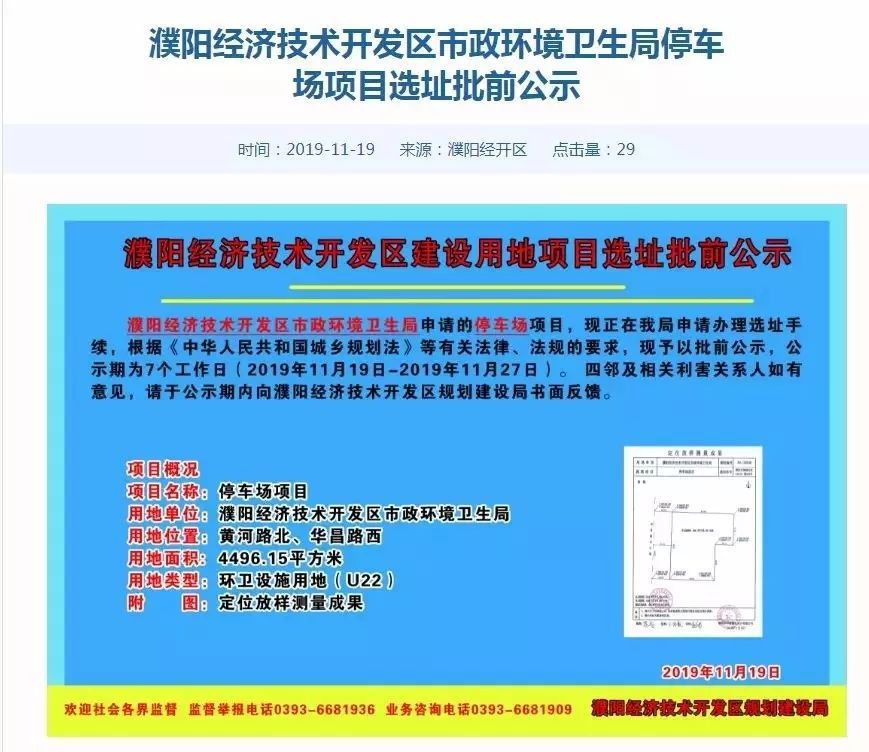 濮阳经济技术开发区市政环境卫生局申请的停车场项目选址的公示(批前公示)该项目位于黄河路北、华昌路西。