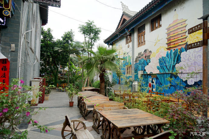 无论是建筑物上的油画还是形状特别的餐桌,感觉都非常特别