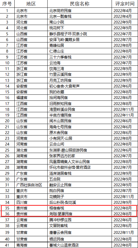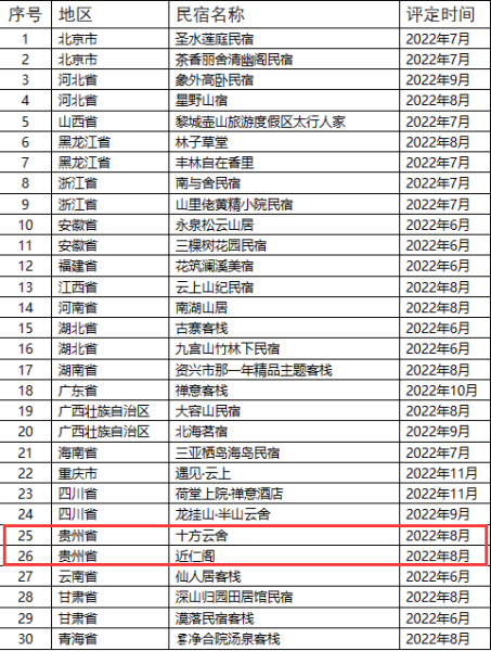 手机访问:wap.265xx.com贵州四家民宿上榜全国甲级、乙级旅游民宿评定结果公示名单