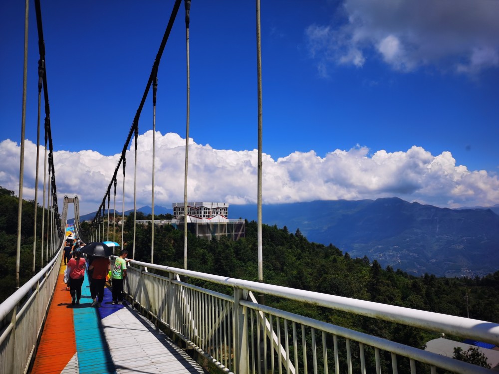也称鹊桥,而白马王子与仙女被王母永久分开只能隔江相望。所以当地人在这里建了这座同心桥,也希望天下有情人也能够在此相聚,永结同心。同心桥全长156米,每当云雾升腾,情人行走于桥上,便如王子与仙女在云中漫步。朋友们还可以将在魔方广场购买的刻有独一无二心愿的魔方挂在索桥上,表达自己对爱情的美好期待与祝愿。