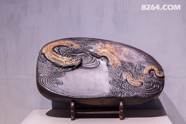 另一家店里出售的端砚,雕工精细,飞龙造型栩栩如生。