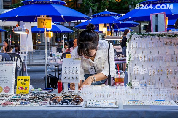 我来到清溪川广场的时候,夜市的各种小摊刚刚摆好,大部分摊位卖各种手工首饰,然后有一部分卖特色小摆设,还有一些卖自己DIY的T恤与生活用品。逛了一圈,并没有看到能吸引我跺手的,嗯,省钱啊!