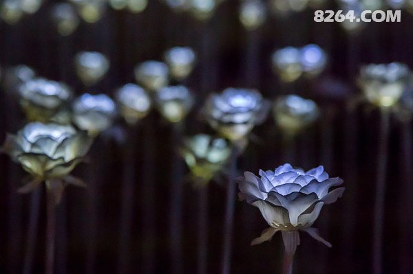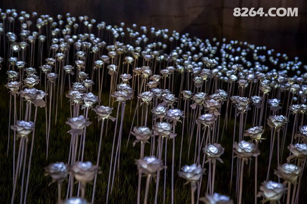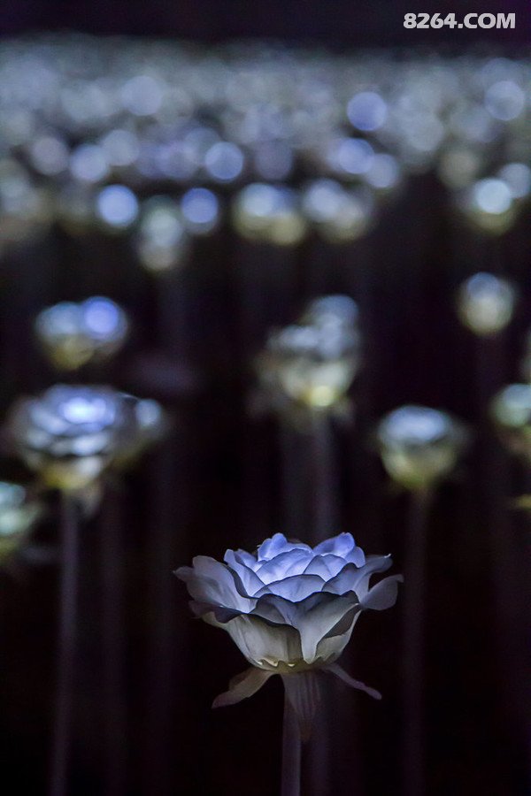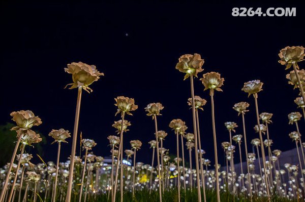 虽然设计广场的建筑没有亮灯,但广场上的这片网红玫瑰花海有亮灯,终于让我受伤的心灵有了小小的弥补。这片玫瑰花海在是设计广场的一片空地上整齐有序地插满了玫瑰绸缎花,然后在花心装了LED灯,晚上亮灯后还是有点小壮观。但因为去之前对这片玫瑰花海期待过高,看到现场昏暗的玫瑰花海时,不免有点小失望。还有一点就是它们太整齐了,太整齐了就不好拍摄。为了得到理想的影像,我调高了相机的ISO,围着这片玫瑰花海走了一大圈,寻找各种角度,变换各种视角,尝试各种数据去拍摄,但还是没有拍出一张自己满意的相片。好,发图!各位慢慢欣赏啦!