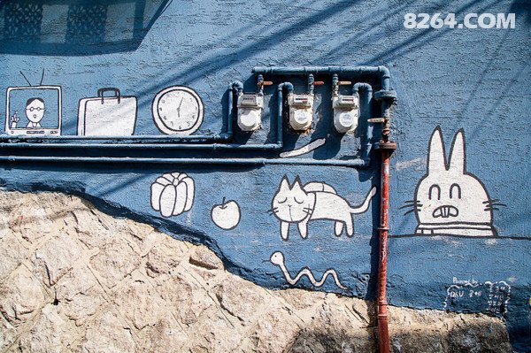 梨花洞壁画村,除了壁画外,还有不少艺术装饰,如果不赶时间,在这里慢慢逛,慢慢拍,累了随意找一家店喝喝咖啡,可以在这里悠闲地度过一天。