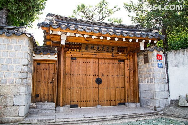 这是五景一座很重要的建筑,来到这里的时候刚好有一个旅行团,旅行团所到之处人声鼎沸,怪不得这里每家每户的大门上都贴有用中文、韩文、英文写的:“住宅区,请安静”的提示。我被这个旅行团的人吵得我没有认真细看,就加快脚步离开了。我只是在这里站了一小会就吵得受不了,住在这里的居民天天受到骚扰,换了是我可能已经崩溃了,难怪梨花洞民壁画村的居民要提出抗议啦。