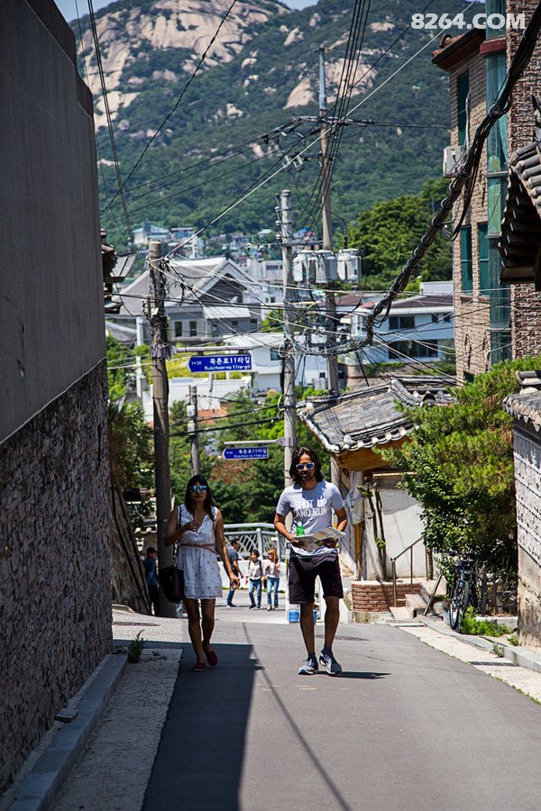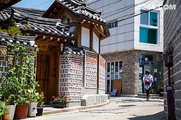 看到这块石头,就已经到了北村韩屋村一带。北村,因坐落在清溪川和钟路的北端而得名。最初的北村位于景福宫和昌德宫之间,曾是朝鲜时代两班贵族多居住在这里,现在的北村保留着11个洞900多座传统韩屋。