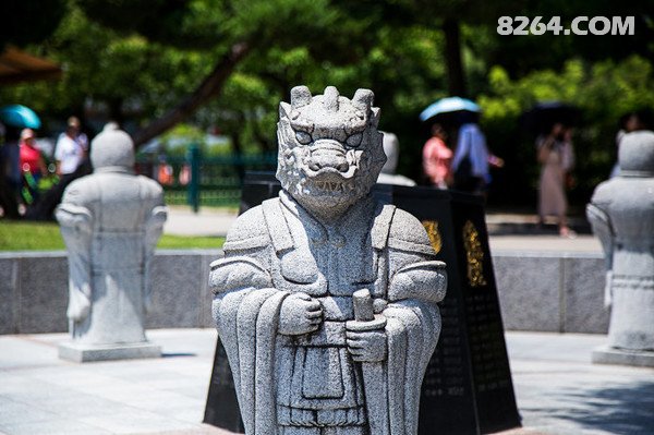 沿着三清洞走进了国立民俗博物馆,博物馆内立前不少的石雕。