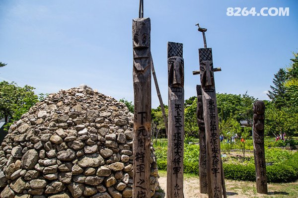 这些没有记错的话,是韩国传统图腾,后面堆放的石头是祝福所用。