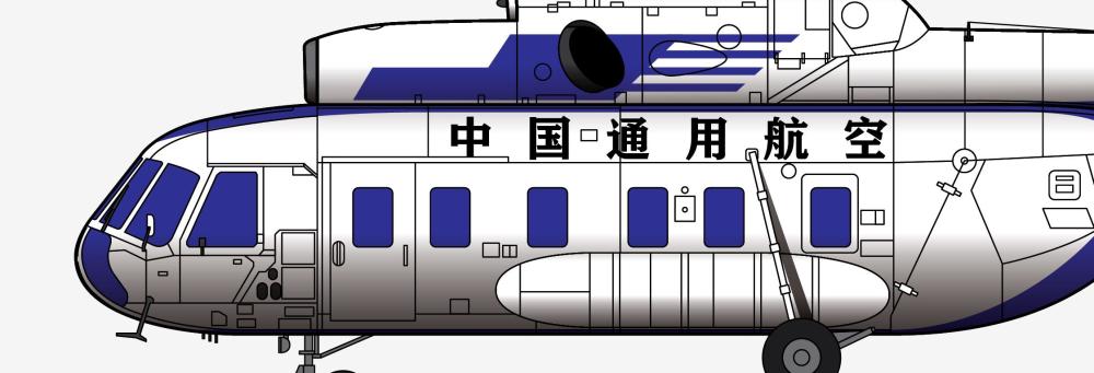 本厂长绘制的中国通用航空公司B-7802号米8T直升机二视图