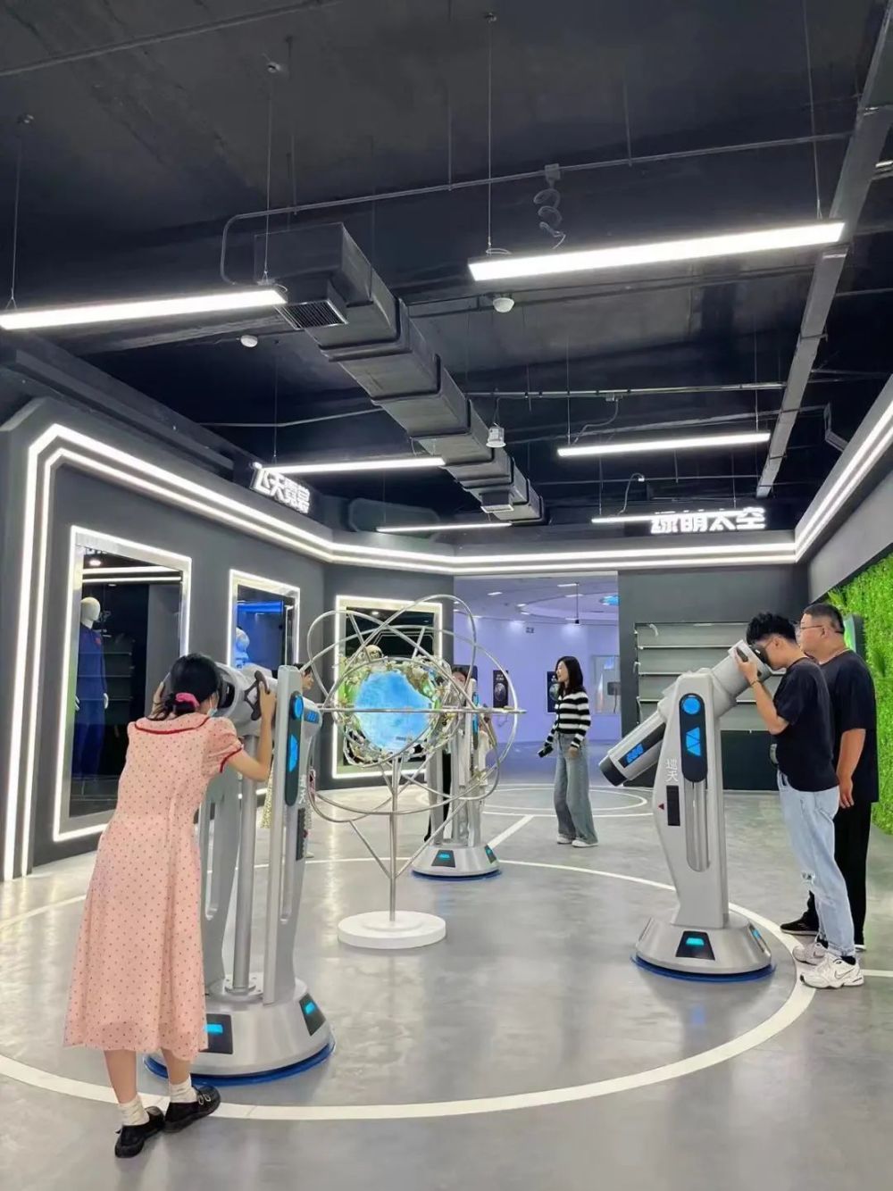 航天科技体验馆是以神秘太阳系、冲出地球、太空生活、奔向月球为主题的一个集航天科技展示、科普教育、互动体验为一体的综合性主题展馆;小剧场配备了P4 LED室内高清全彩屏,可容纳近400名观众,定期举办相声、秦腔等专场演出,承接演唱会、音乐会、时装秀等多种演出活动,自投入运营以来年演出达近百场次,即增添了街区的艺术气息,也丰富了游客的精神需求;