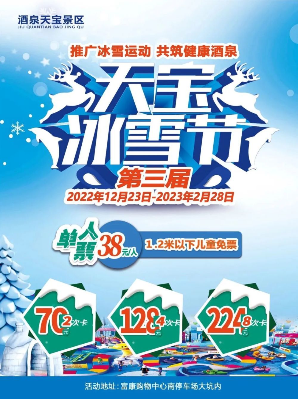 为了办好本届大众冰雪季,酒泉天宝景区重新规划了冰雪节布局,集合本地特色新增大量冰雪娱乐项目,形成高坡滑雪区、短坡雪地滑雪区、成人/儿童滑冰区、冰壶竞赛区、团队竞赛区、雪地摩托/雪地坦克区、雪地转转区、雪地秋千区等区域,以崭新的姿态喜迎八方游客、展现酒泉冰雪运动之美。