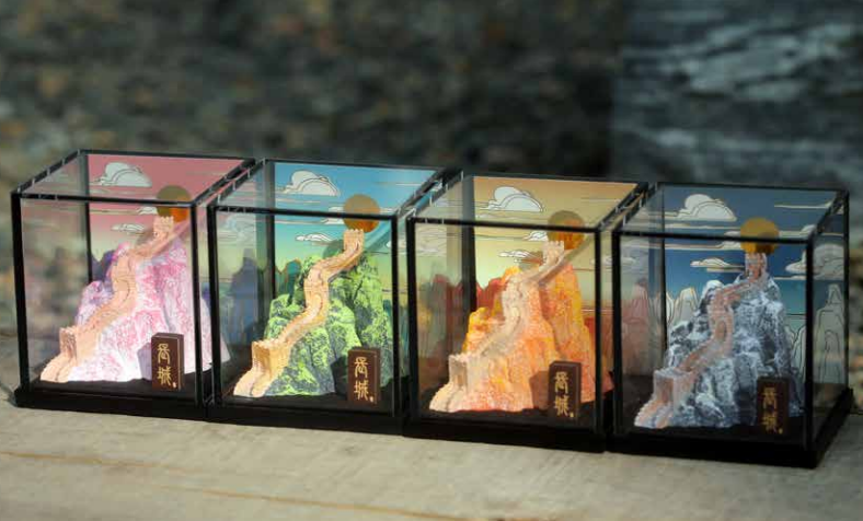 夜长城开放期间,八达岭文创店夜不闭户,店内精品琳琅满目,应有尽有,长城不倒杯、长城四季摆件、精致生活用品、高档瓷器茶具……3000多种类产品供您选择,满足您的购物欲。