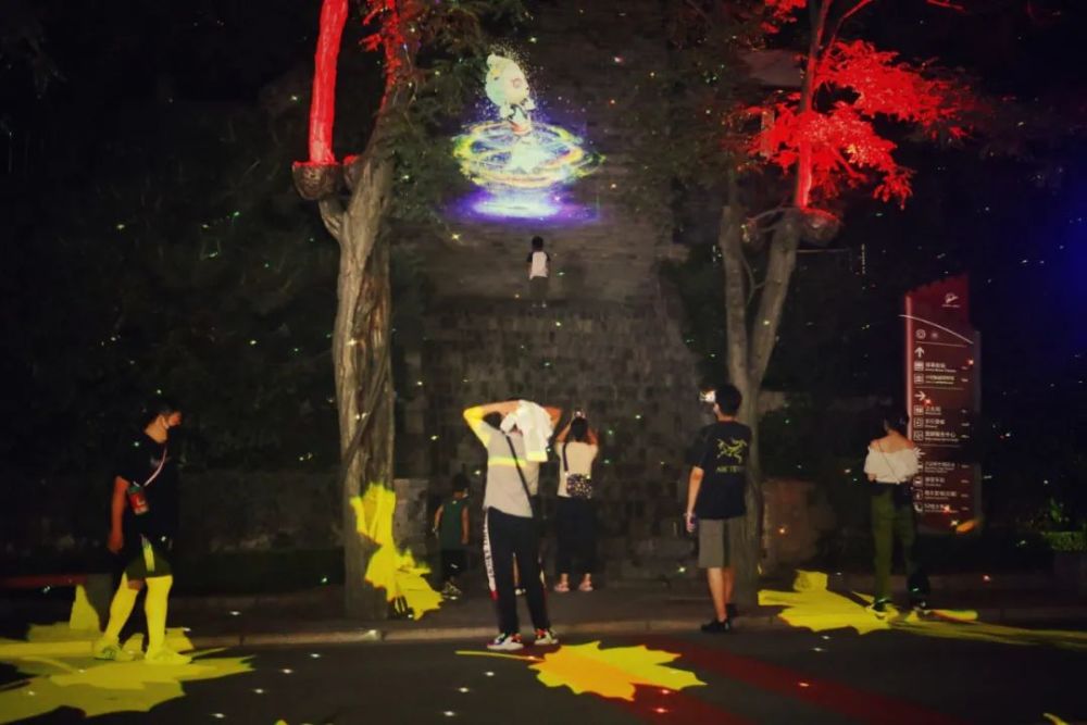 大饱口福后,渐渐的,天色已经转暗。19点30分,五彩斑斓的光影一迸齐发,华灯初上,八达岭长城化身上古山神烛龙,在层峦叠嶂的掩映下熠熠生辉,使您大饱眼福。