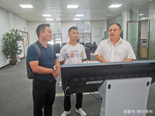 贵州黄果树旅游集团公司信息服务部副经理胡宏(右一)介绍指挥调度中心情况