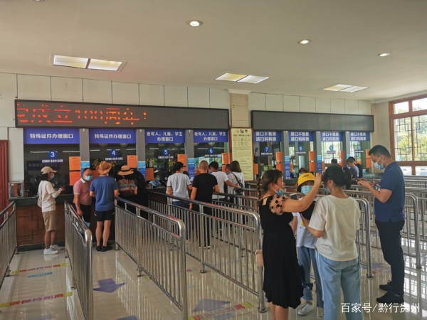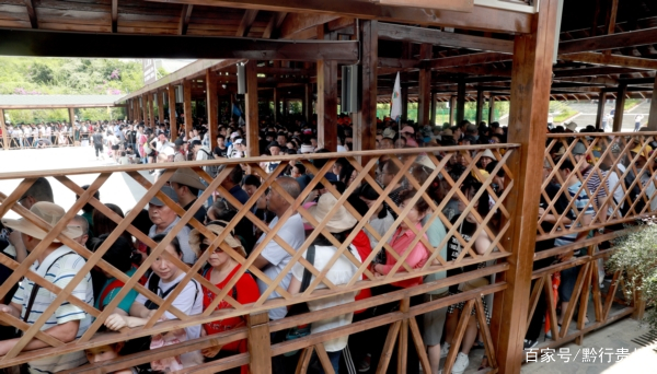 这个时候,较真的记者故意绕开巡游的服务人员,跨过20多个台阶后,只身来到黄果树大牌坊票务中心,同样这儿也人流稀疏,线下购票几乎不用排队,一些购票窗口也就三、五个人,来到另一乘车入口,这里通道更加顺畅,为了不让游客拥挤和混淆乘观光车路线,检票口将游客分流为天星桥景区和大瀑布景区两个通道,随着检票结束,游客按顺序上车,与以往相比,这里没有看到有游人密集排队乘车,更别说拥挤抢车位了!
