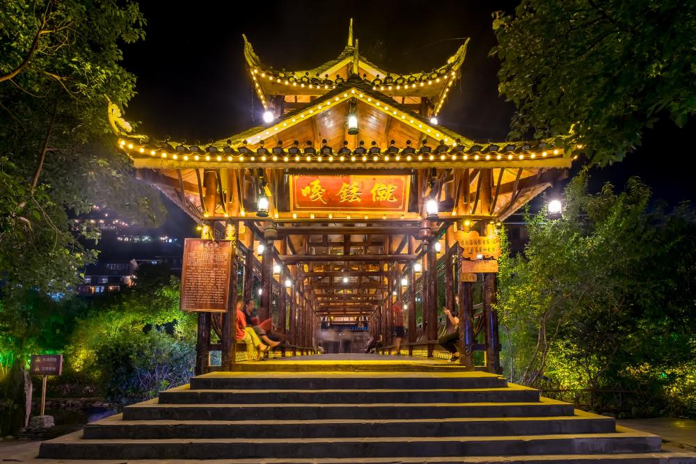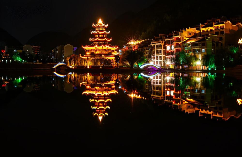 舞阳河穿城而过,将不大的镇子分为两边,白天的古镇风光古朴秀美,但晚上的古镇却更是多了一分迷人。