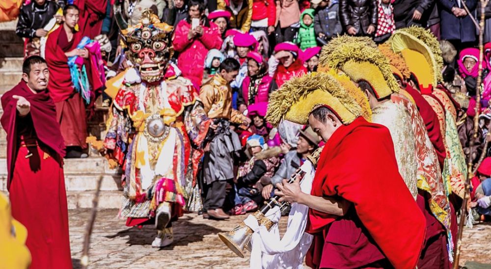 格冬节又称跳神节,是松赞林寺一年一度的节日。节日举行四天,四天内第一天为跳神预演,第二三天为诵经法会,第四天为面具舞。面具舞的场面最为热烈,面具种类多样,有马、猴子、牦牛、狗、老虎等,神秘的气氛持续一整天。